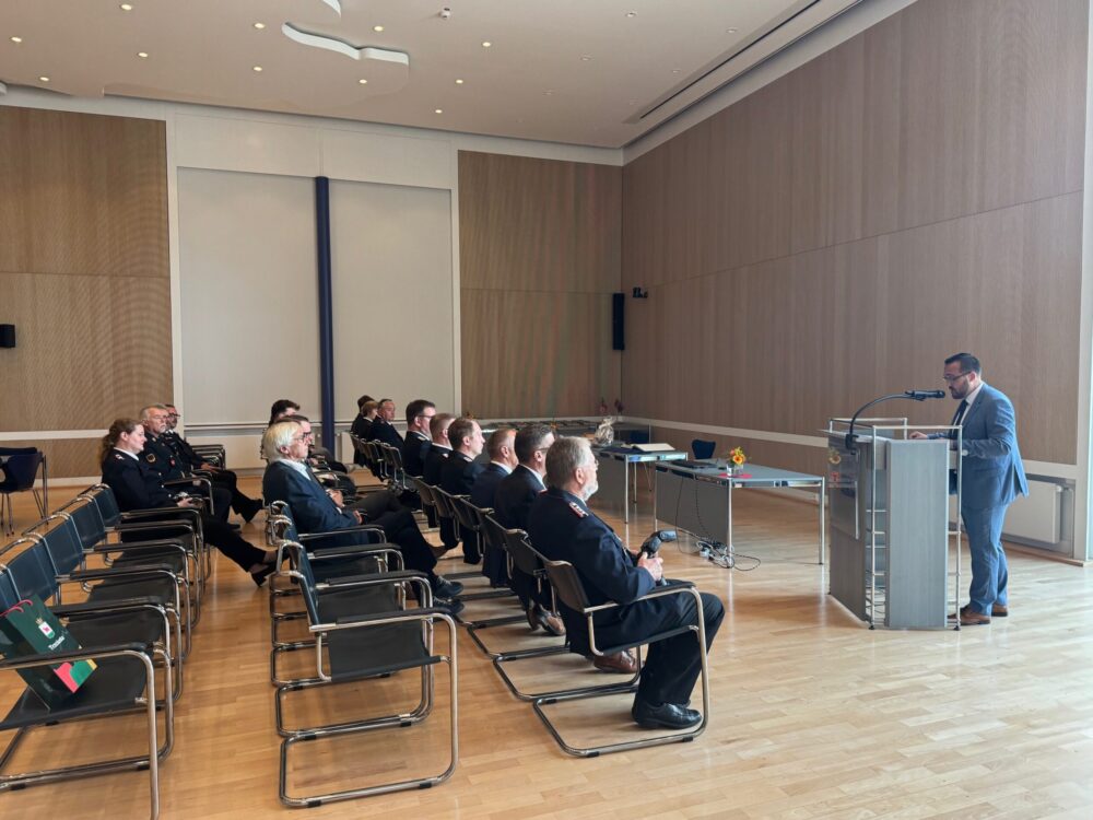 Unter den Anwesenden waren neben den Kameradinnen und Kameraden der Freiwilligen Feuerwehr Husum unter Führung von Wehrführer Frank Dostal auch Vertreter der Partnerwehren und -städte aus Memmingen, Heilbad Heiligenstadt und dem polnischen Trzcianka.