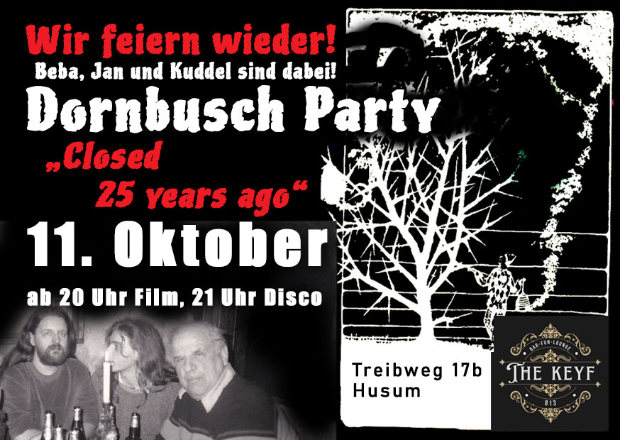 Doch die Erinnerung an den Dornbusch lebt weiter. Seit der Schließung organisieren Jan und Beba zusammen mit den Kult-DJs Peter und Kuddel regelmäßig Revival-Partys in Husum. Zunächst im „Sturm & Drang“, inzwischen im The Keyf.