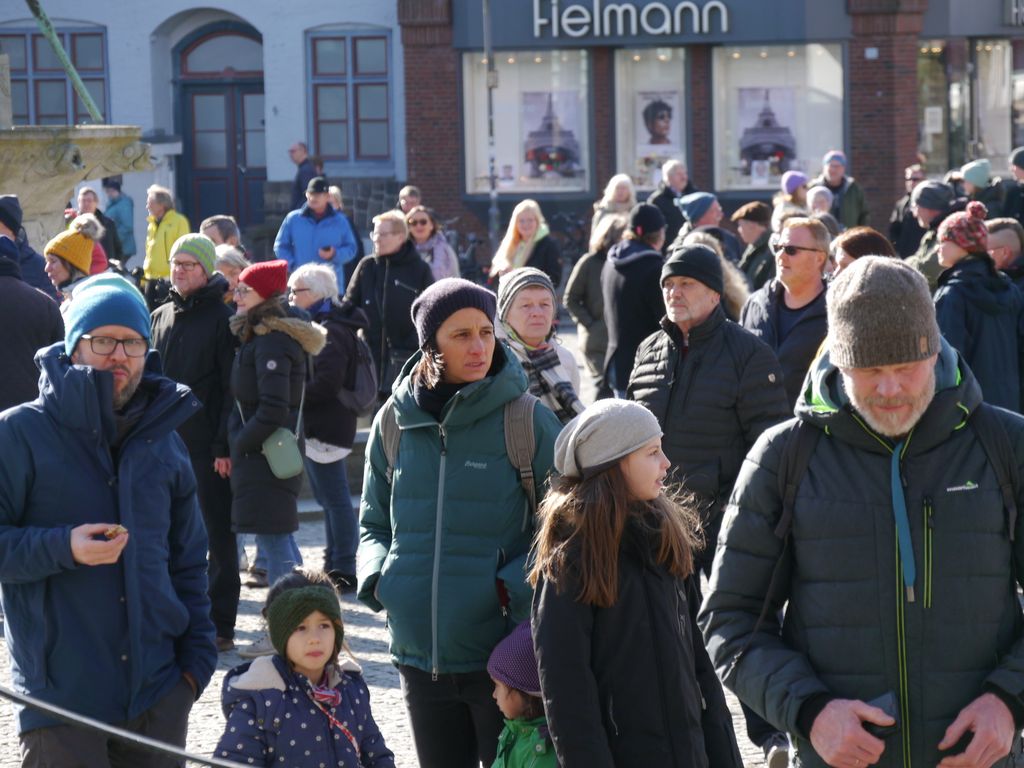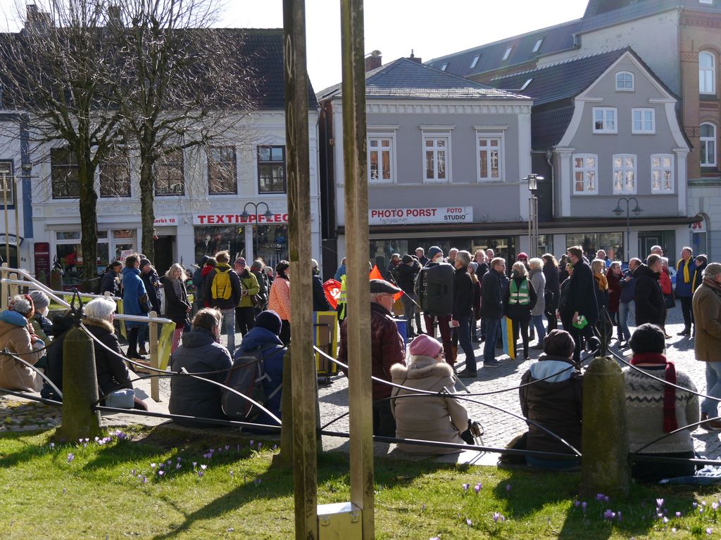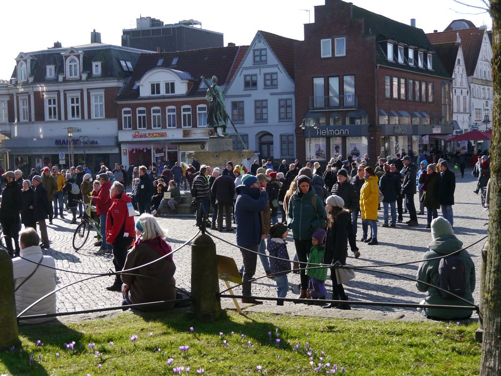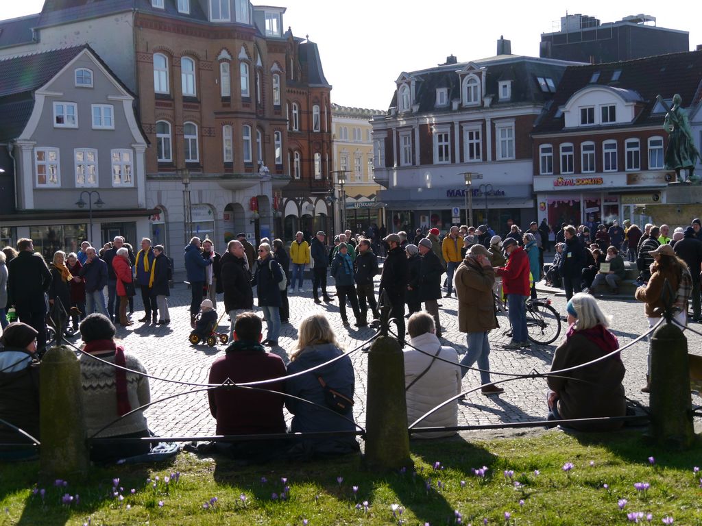 (CIS-intern) – Die Grünen hatten die Bürger Nordfrieslands und die demokratischen Parteien zu einer Friedenskundgebung am 27. Februar 2022 auf den Husumer Markt aufgerufen. GRÜNE, CDU, SPD und SSW waren neben dem Husumer Bürgermeister und dem Bürgervorsteher der Einladung gefolgt. Sie hielten eindrucksvolle kurze Ansprachen und zum Abschluss verblieben von den rund 500 Demonstranten noch einige Hundert auf dem Marktplatz und diskutierten untereinander weiter.