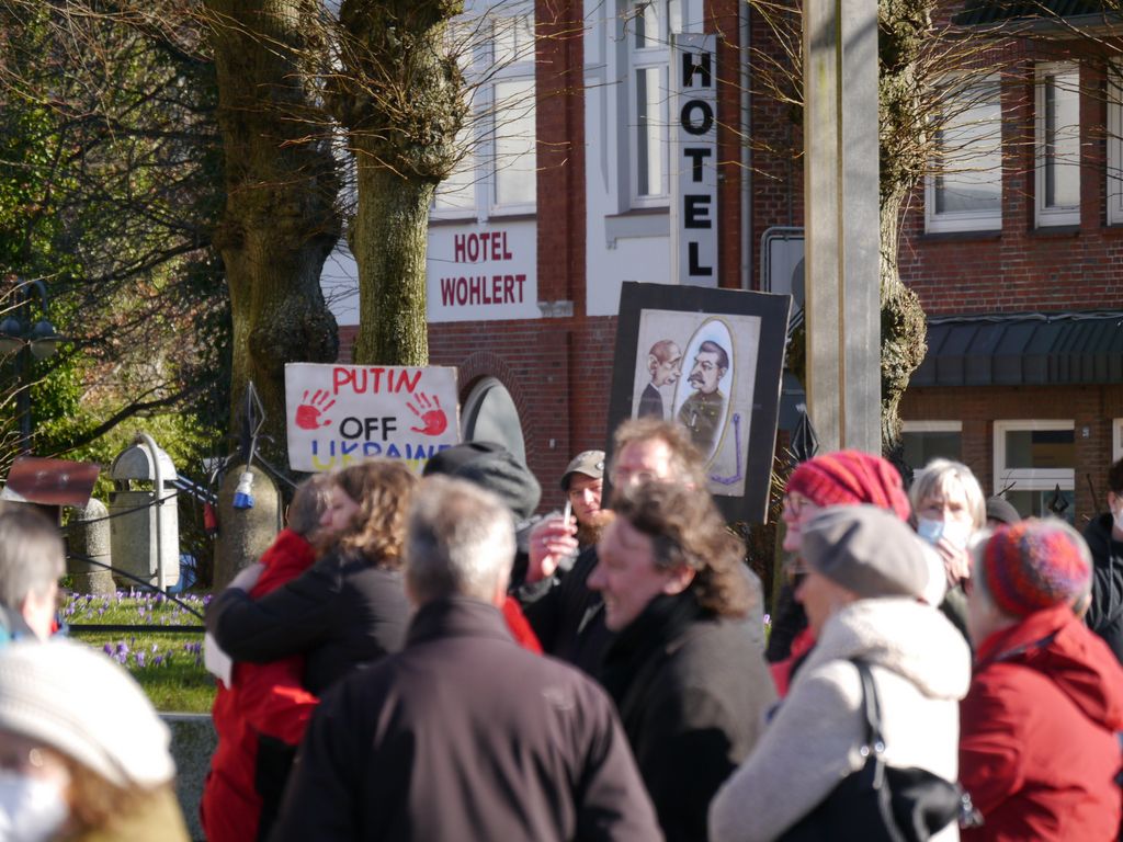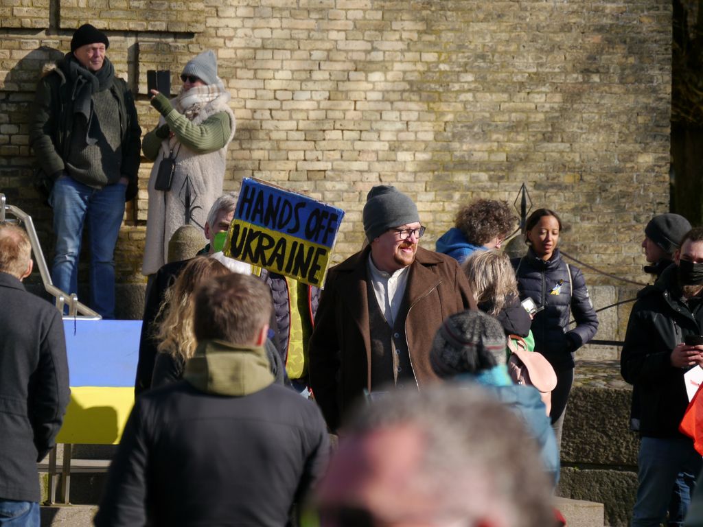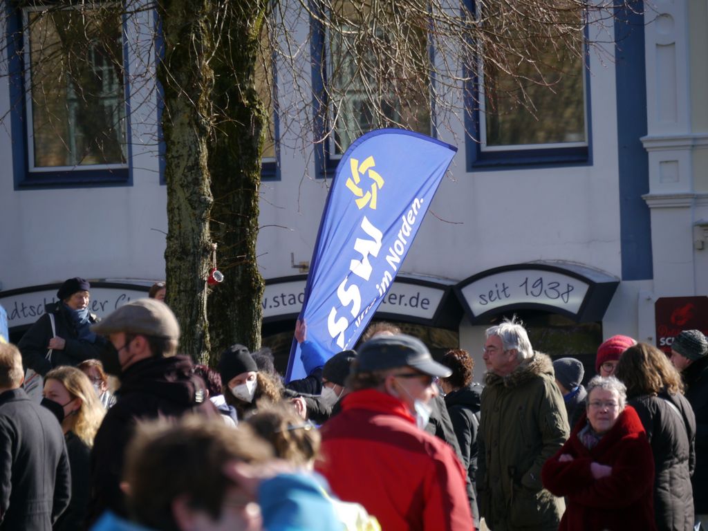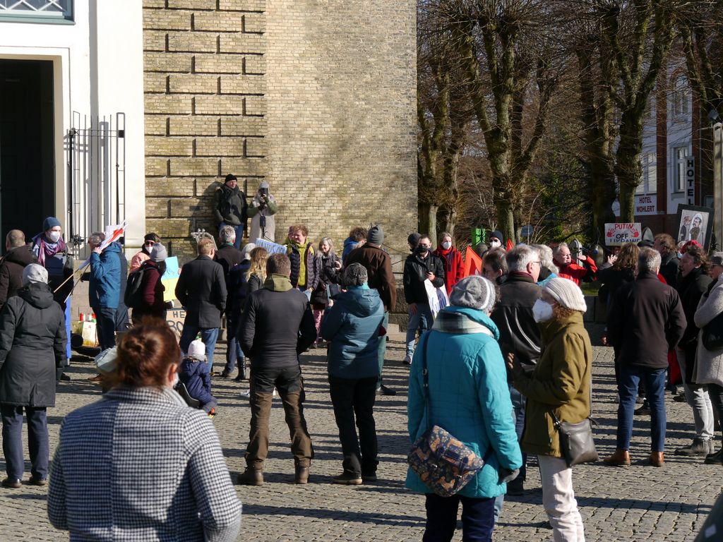 (CIS-intern) – Die Grünen hatten die Bürger Nordfrieslands und die demokratischen Parteien zu einer Friedenskundgebung am 27. Februar 2022 auf den Husumer Markt aufgerufen. GRÜNE, CDU, SPD und SSW waren neben dem Husumer Bürgermeister und dem Bürgervorsteher der Einladung gefolgt. Sie hielten eindrucksvolle kurze Ansprachen und zum Abschluss verblieben von den rund 500 Demonstranten noch einige Hundert auf dem Marktplatz und diskutierten untereinander weiter.