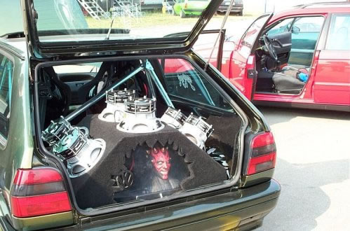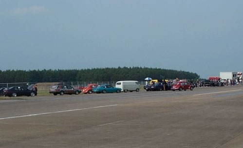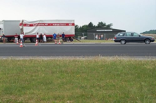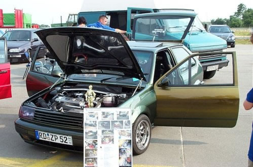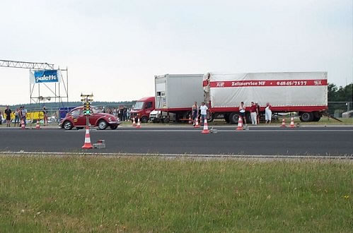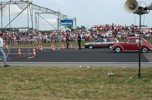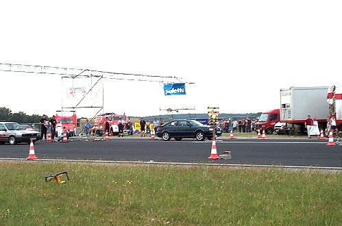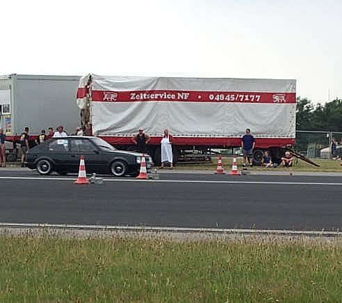 Und Regeln sind dafür da, sie zu brechen. Der Publikumsliebling, ein Uralt Passat Kombi mit sage und schreibe 480 PS mußte laut Regeln nach der Qualifizierung (Bild oben) eigentlich disqualifiziert werden (er war zu schnell !?)…