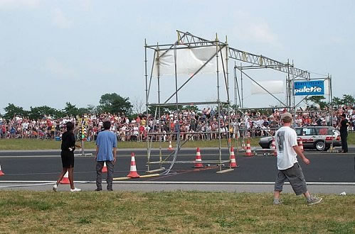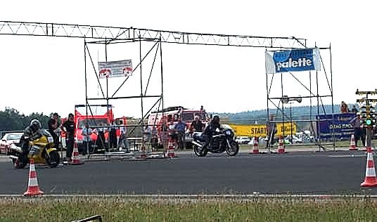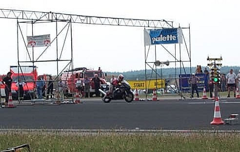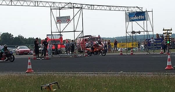 So ging es dann weiter, wer gewonnen hat, weiß ich auch nicht, aber das war auch irgendwie egal. Es kam auf den Spaß an. Auch Motorräder sorgten mit viel Getöse und Rauchwolken für gute Stimmung beim Rennen. Eine Rauchwolke war allerdings nicht so gut, denn danach mußte das Rennen ziemlich lange unterbrochen werden, um die Bahn zu reinigen. Der Motor war wohl geplatzt. Aber Sicherheit geht vor.