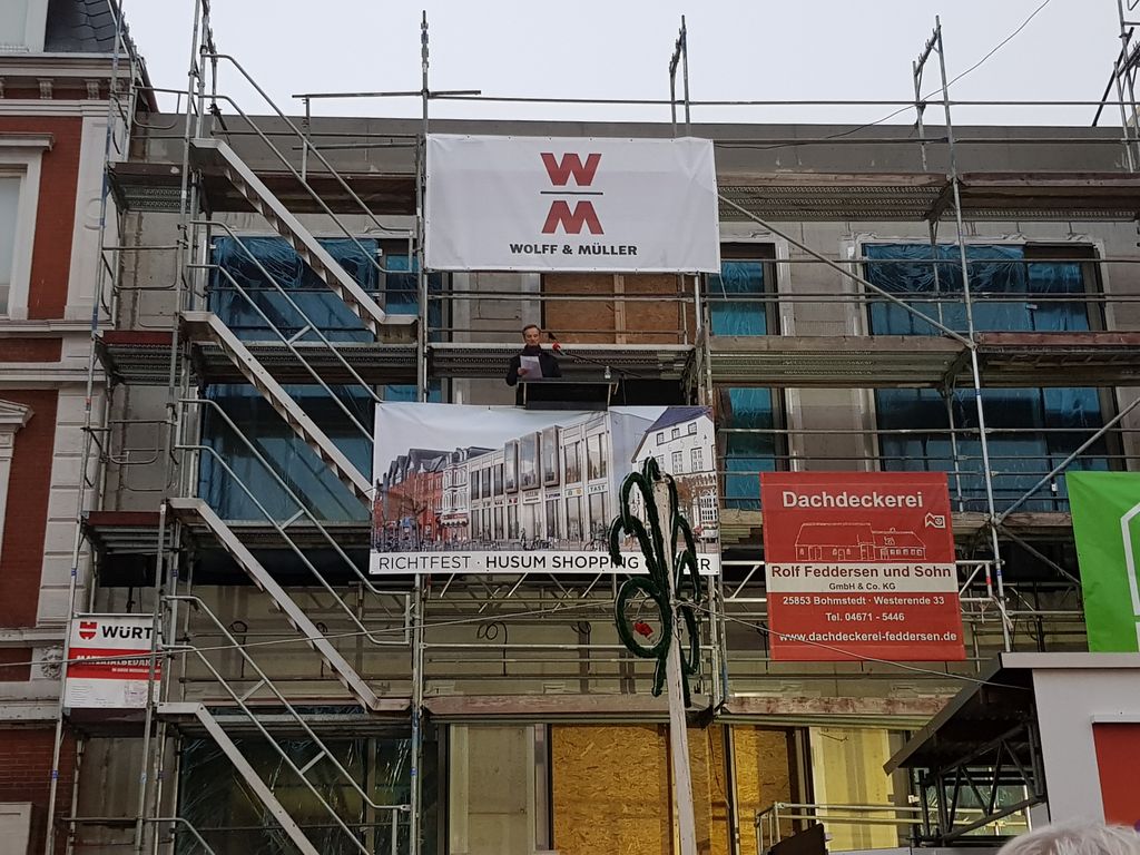Das war natürlich ein großes Ereignis in Husum. Endlich konnte Richtfest für das neue Husumer Shopping Center gefeiert werden. Auf einer Fläche von 12.000 m² werden sich 35 Läden einmieten. Darunter H&M, DM Markt und ein großer EDEKA Markt. 2/3 der Flächen sind schon vermietet, so dass dann im September 2019 eine große Eröffnung folgen kann.