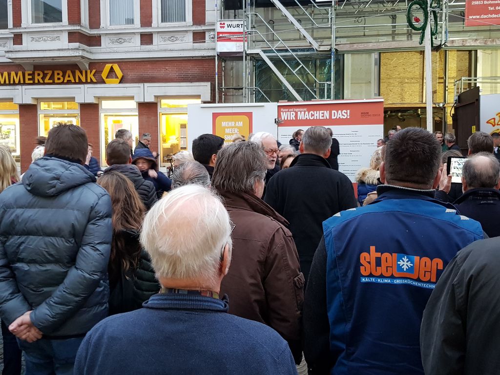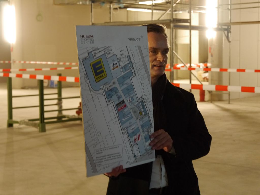 Wir durften die Baustelle schon einmal besichtigen, auch die Gäste, u.a. Alt-Ministerpräsident Carstensen sind erfreut über die Aktivitäten in Husum. Mit-Investor Cohrs bedankte sich bei allen am Bau beteiligten und freut sich auf ein reges Geschäftsleben in der neuen Shopping Mall. Übrigens wird noch ein Name dafür gesucht. Jeder kann sich beteiligen. Infos auch unter: http://hsc-husum.de